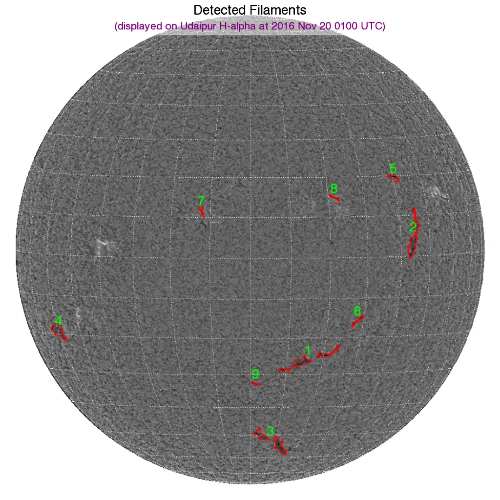 ※フィラメント:いくつかのフィラメントは消失したようですが西側にフィラメントが浮いています。(南半球のものはやや長め)