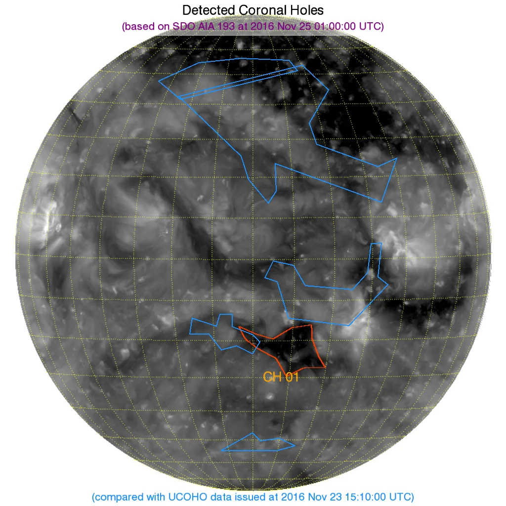 太陽フレアと黒点数(2016年11月25日更新)※コロナホール影響下