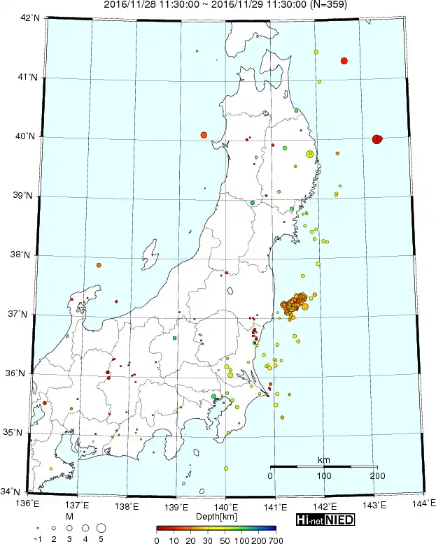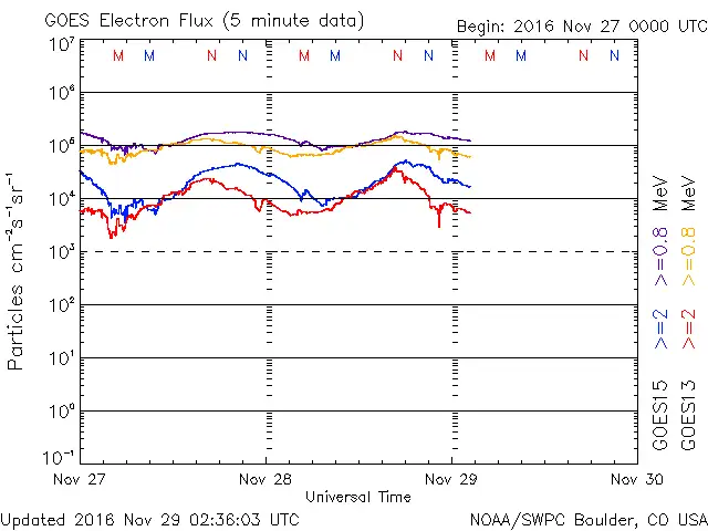 レベルは上昇したまま、大きな乱れ等はありませんでしたが、11/28 22時(UT)頃、小さなピンポイントの反応が出ました。