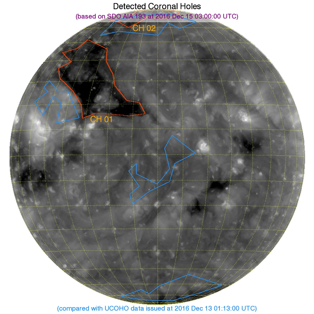 赤道付近の東側と北半球ほぼ正面に小さなコロナホールがカウントされました。