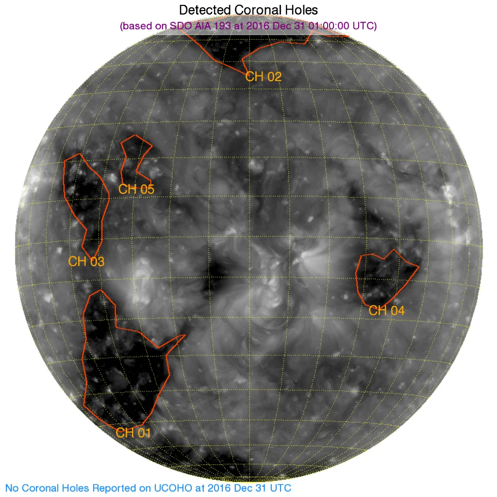 北半球の東端に新しいコロナホールが2つカウントされました。