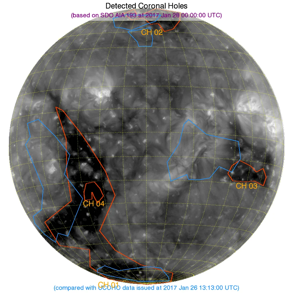 太陽フレアと黒点数(2017年01月28日更新)※コロナホール影響下