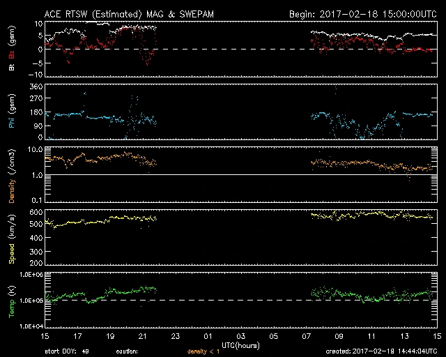 所々トゲのような反応があり、02/18 15時、18時(UT)前後に少し強い反応がありました。