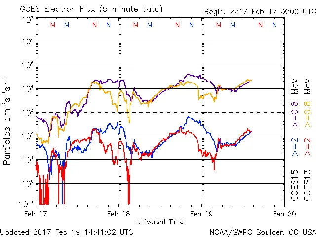 太陽フレアと黒点数(2017年02月19日更新) ※コロナホール影響下