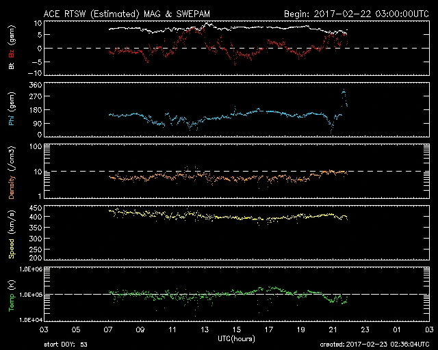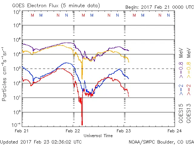 02/23 03時(UT)、再び落ち込み始めています。強い反応や乱れが出るようなら要注意。