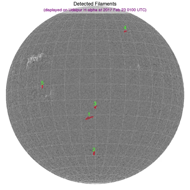 ※フィラメント:北半球に小さなものが2つ、南半球正面付近に小さなフィラメントが数個浮いています。