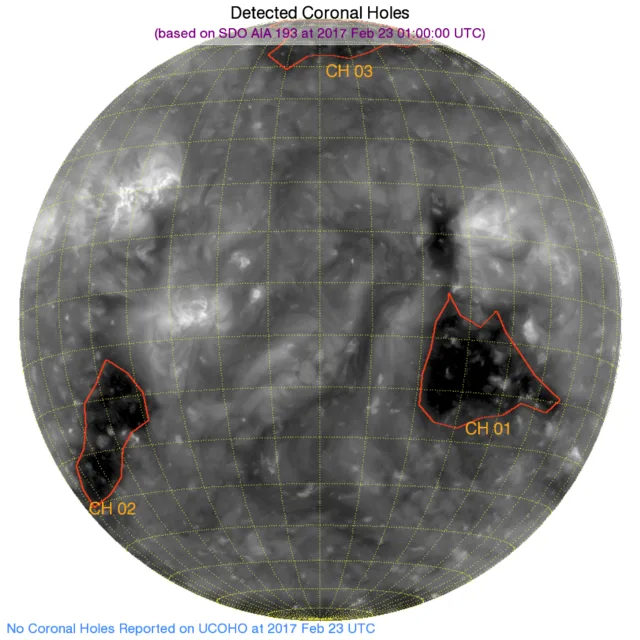 南半球西側のコロナホールはやや縮小。こちらの影響がそろそろ届き始めるかも。
