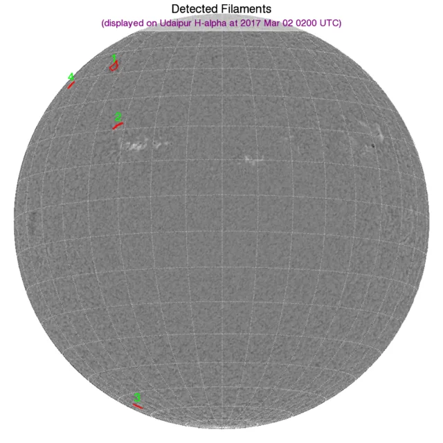 ※フィラメント:北半球東側に小さなフィラメントが3つ浮いています。