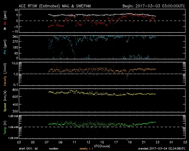 速度は少し下がって現在は680km/s前後で推移していますが、高速な状態が続いています。