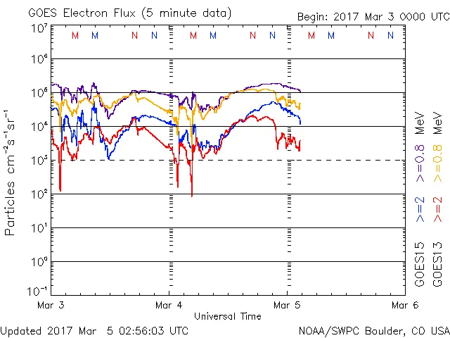 太陽フレアと黒点数(2017年03月05日更新)※無黒点状態&コロナホール影響下