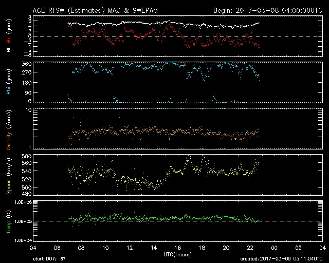 引き続き540km/s前後で推移しています。※速度にバラ付あり
