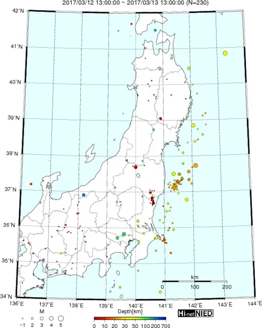 03/11 0時(UT)頃から落ち込みはじめ、03/12 03時(UT)くらいにピンポイントの反応がありました。