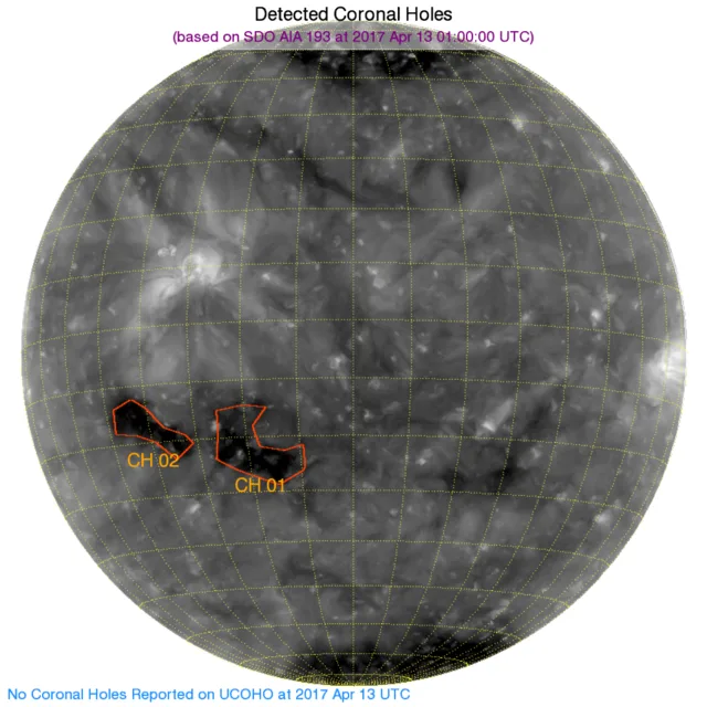 南半球東側にコロナホールが2つカウントされました。