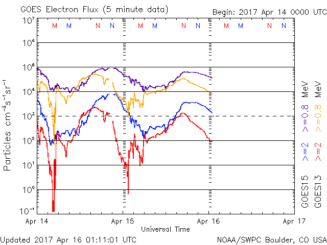 磁場は、北に振れたり南に振れたりしています。(現在はわずかに南寄り)