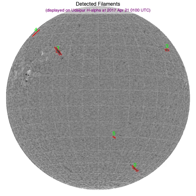 ※フィラメント:南半球西側と北半球東側、西端に小さなフィラメントが浮いています。