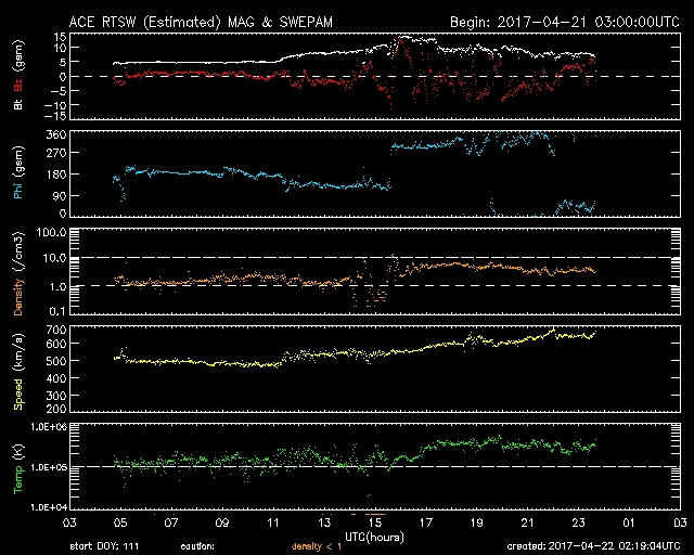 04/21 14時(UT)頃から乱れはじめ、17時頃、21時過ぎ、23時頃(いずれもUT)にピンポイントの反応がでました。