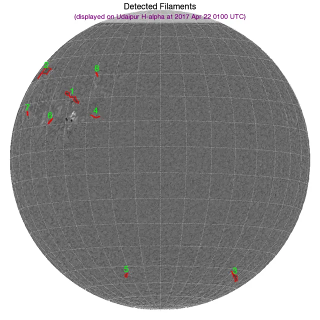 ※フィラメント:北半球東端にフィラメントが多数浮いています。南半球の極付近にも小さなものが2つあります。