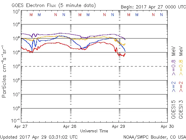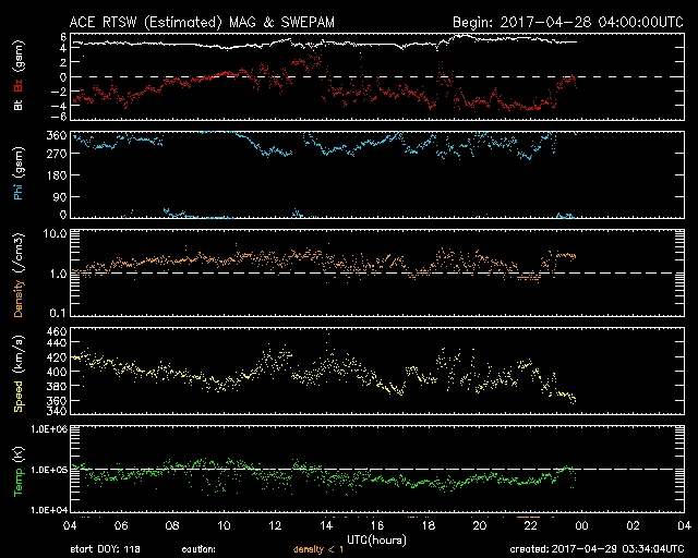 穏やかな推移でしたが、04/28 22時(UT)頃からやや乱れの兆候があります。