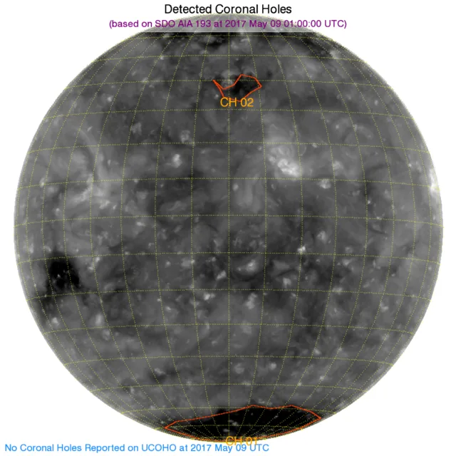 北半球正面あたりに小さなコロナホールがカウントされました。