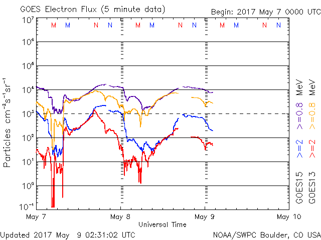 ●静止軌道電子(GOES13と15) ※一部データが欠落した時間帯があります。