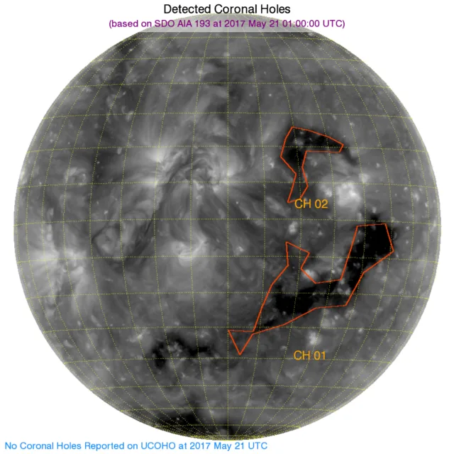 太陽フレアと黒点数(2017年05月21日更新)※コロナホール影響下