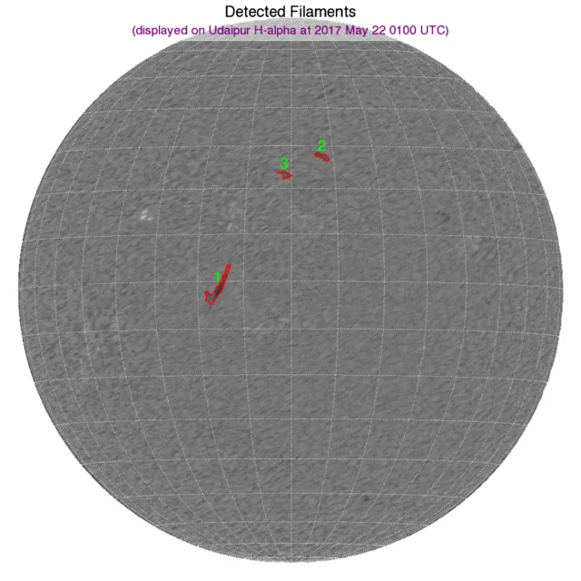 ※フィラメント:北半球正面付近と南半球東寄りにフィラメントがあります。