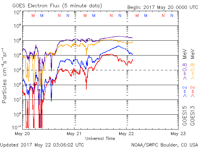 太陽フレアと黒点数(2017年05月22日更新)※コロナホール影響下