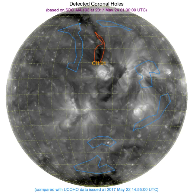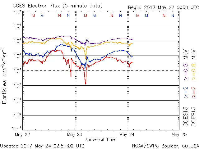 太陽フレアと黒点数(2017年05月24日更新)※コロナホール影響下