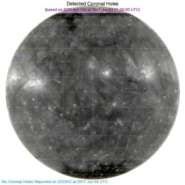 現時点で地球正面の黒点群はありません。←黒点番号が振られていない活動領域でもフレアは発生しますので、あくまで目安として捉えてください。