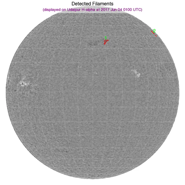 ※フィラメント:北半球西寄りと西端にフィラメントが2つ浮いています。
