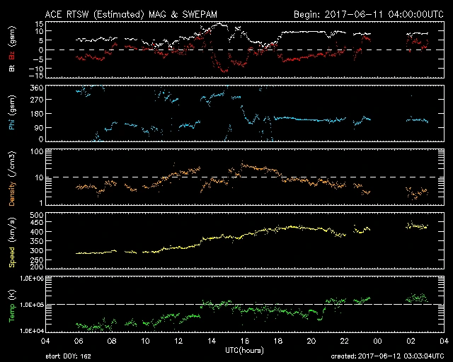 概ね穏やかな推移でしたが、06/11 14時(UT)以降、やや乱れています。