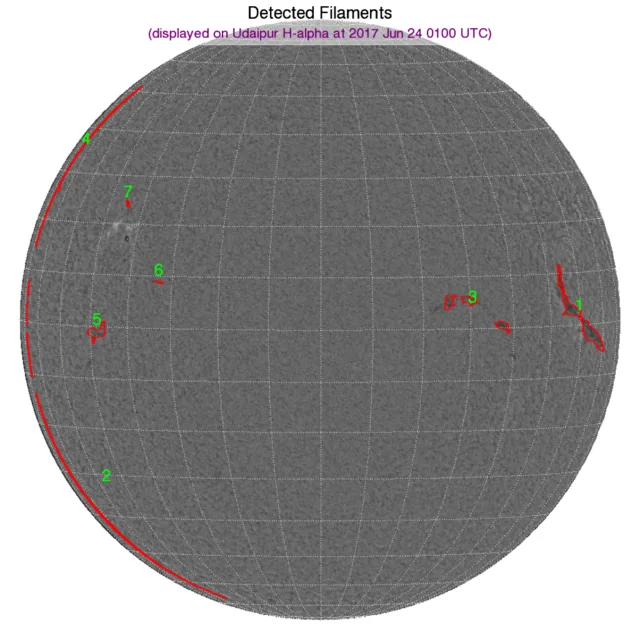 ※フィラメント:赤道付近西端に南北に細長いフィラメントがあります。赤道付近西側と東端にも小さなフィラメントあり。