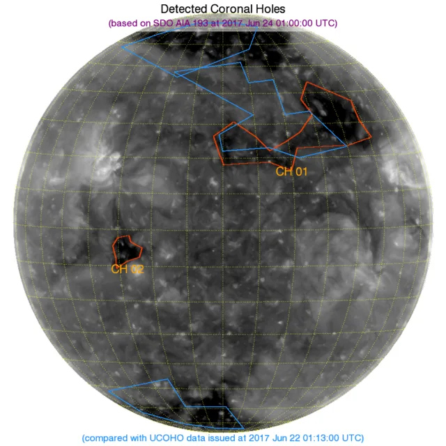 北の極付近にあったコロナホールはカウントされなくなりました。