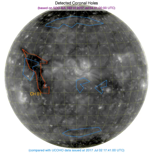 正面付近にあったコロナホールの影響がそろそろ届くかも?