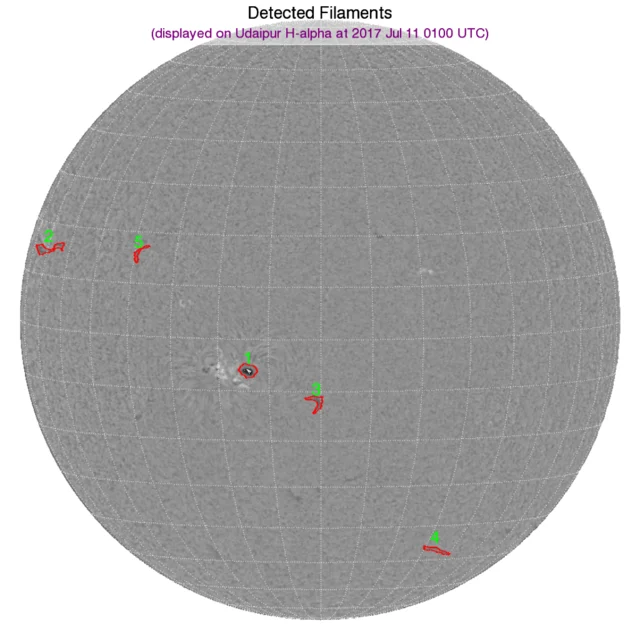 ※フィラメント:北半球東端、南半球正面付近と南の極近くの西側にフィラメントが浮いています。