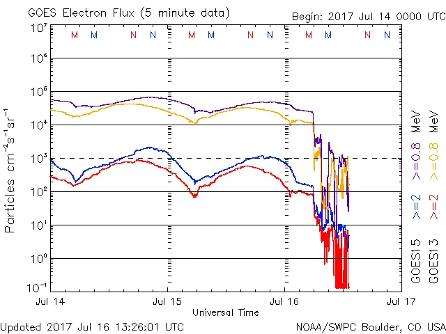 07/14 03時(UT)過ぎから上昇していましたが、07/16 09時(UT)以降、下降しています。