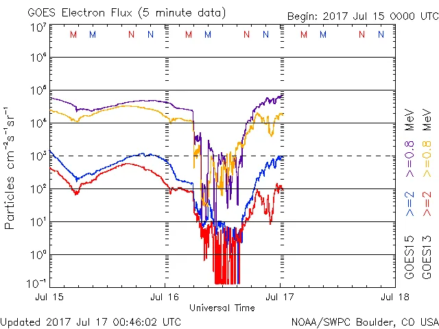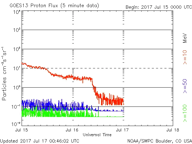 07/14 03時(UT)過ぎから上昇していましたが07/16 09時(UT)以降、下降し続けています。