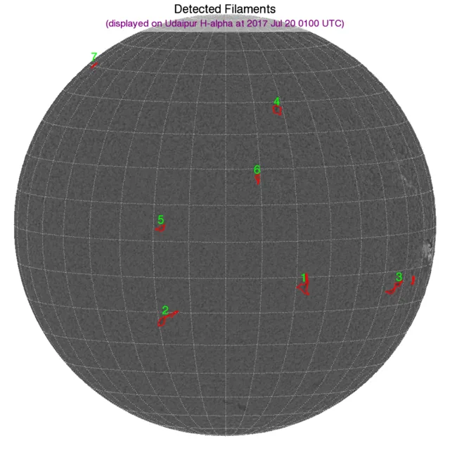 ※フィラメント:南半球西側、北半球西寄り・東側、南半球東寄りにフィラメントが浮いています。