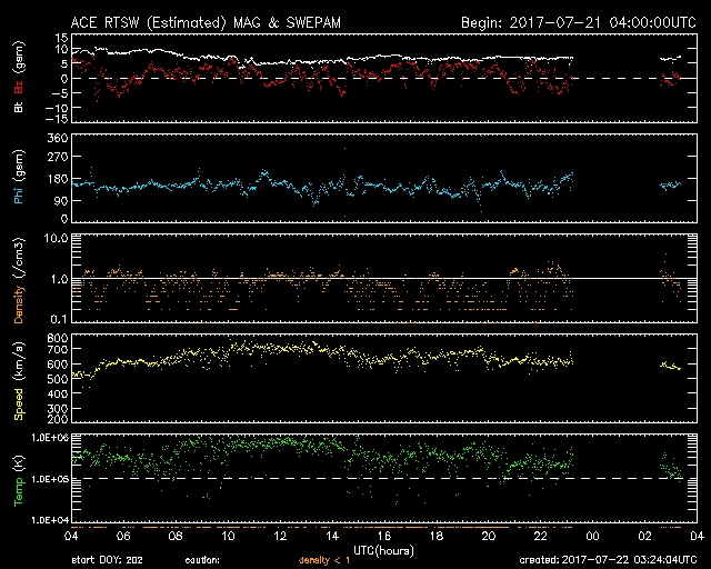速度は少し下がり、現在は600km/s前後で推移しています。