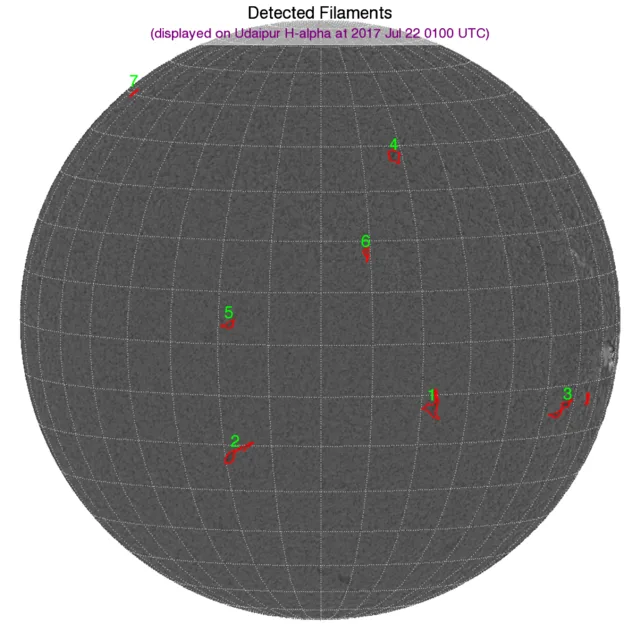 ※フィラメント:南半球西側、北半球西寄り・東側、南半球東寄りにフィラメントが浮いています。