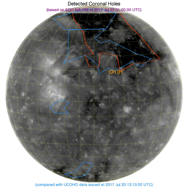 赤道付近東側の小さなコロナホールはカウントされなくなりました