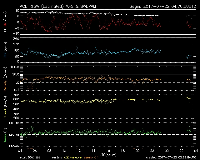 速度は少し上がり、現在は610km/s前後で推移しています。