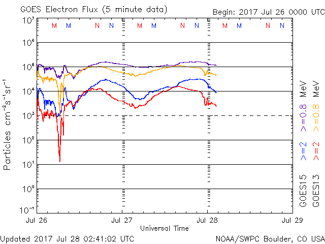 プロトンはやや上昇したままです(裏側で起こった大規模なフレアの影響??)。