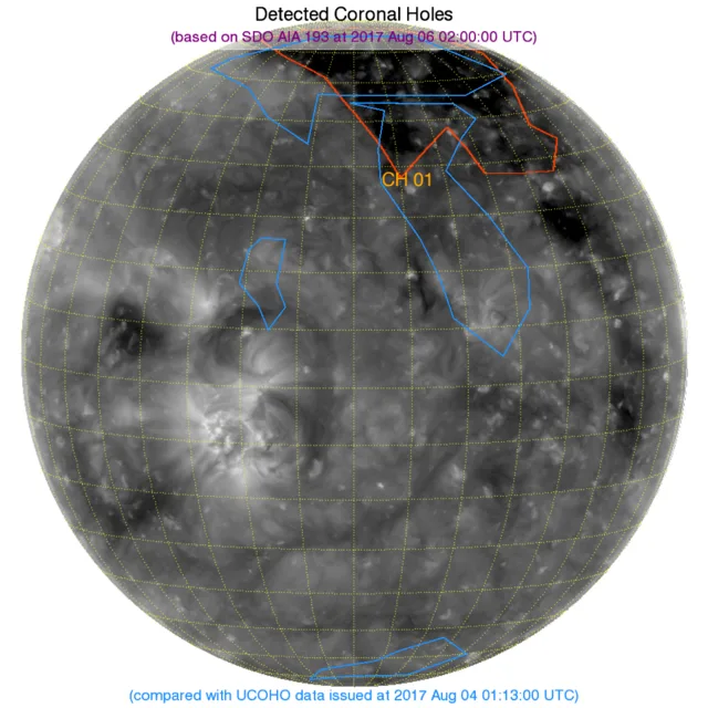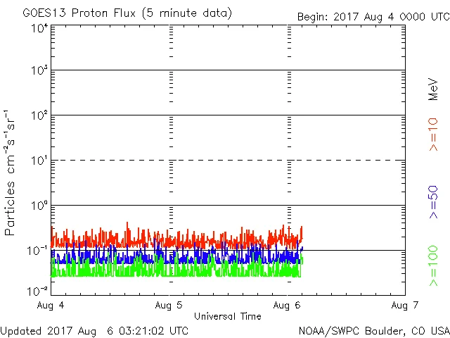 太陽フレアと黒点数(2017年08月06日更新)※コロナホール影響下