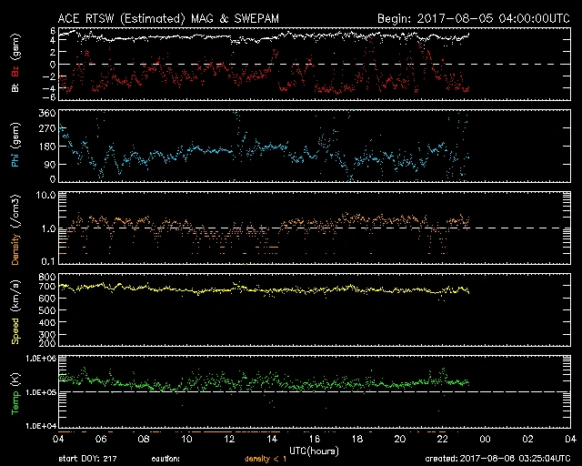 23時(UT)以降、やや乱れの兆候があります。ご注意ください。