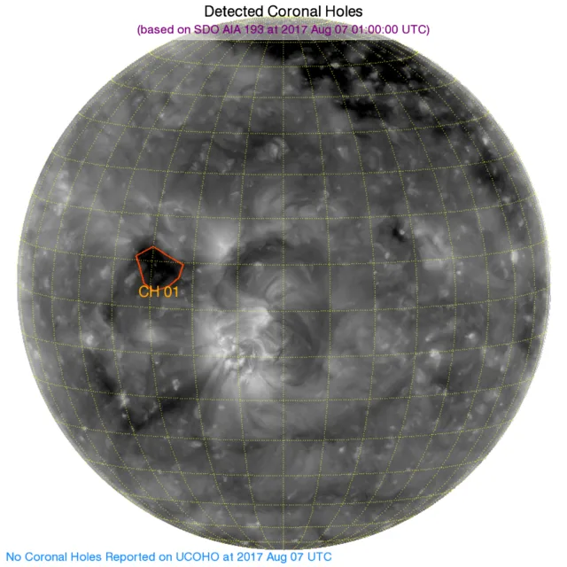 北半球東側に新しい小さなコロナホールがカウントされました。