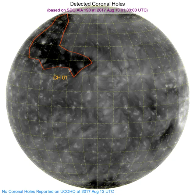 現時点で地球正面の黒点群はありません。←黒点番号が振られていない活動領域でもフレアは発生しますので、あくまで目安として捉えてください。