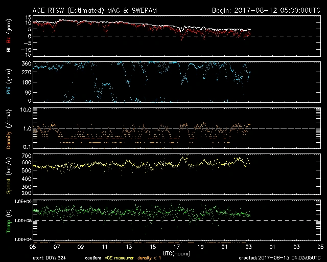 一時的に700km/sを超える高速風が吹いていますが、引き続き580km/s前後で推移しています。