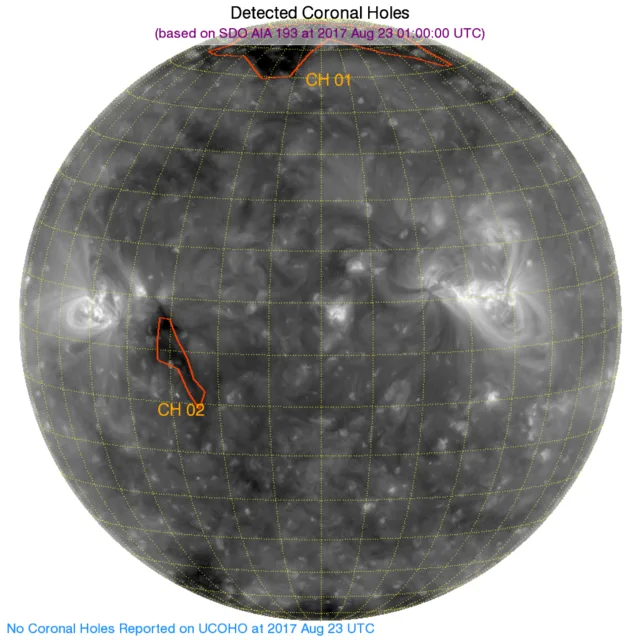 北の極と、赤道付近の東側にコロナホールがカウントされました。