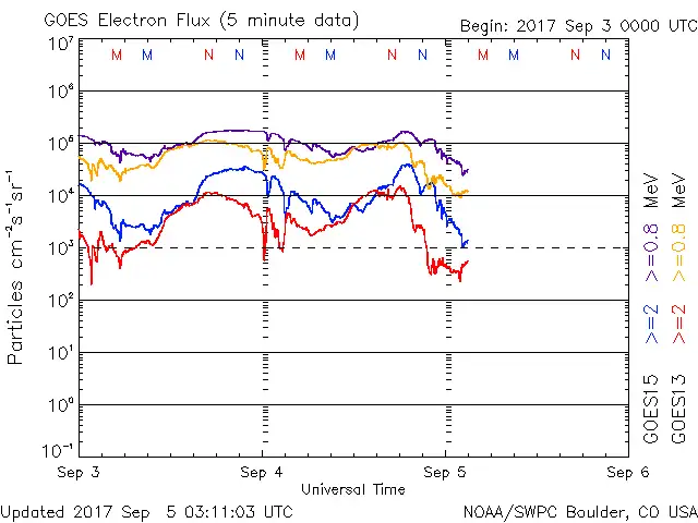 09/04 00時、02時過ぎ(UT)に小さな反応がありました。20時(UT)頃から落ち込み始めています。この後乱れが出るようなら要注意。
